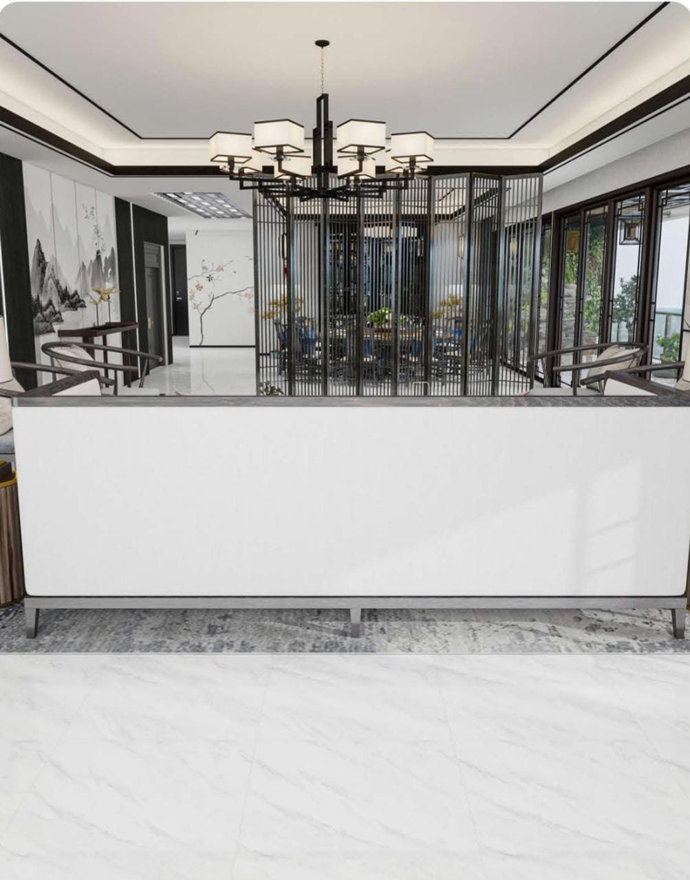 Aesthetic: Soft white field with diffused, low-contrast light grey veining for a gentle, cloud-like marble effect.