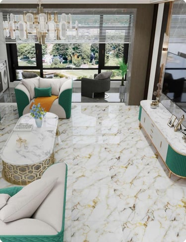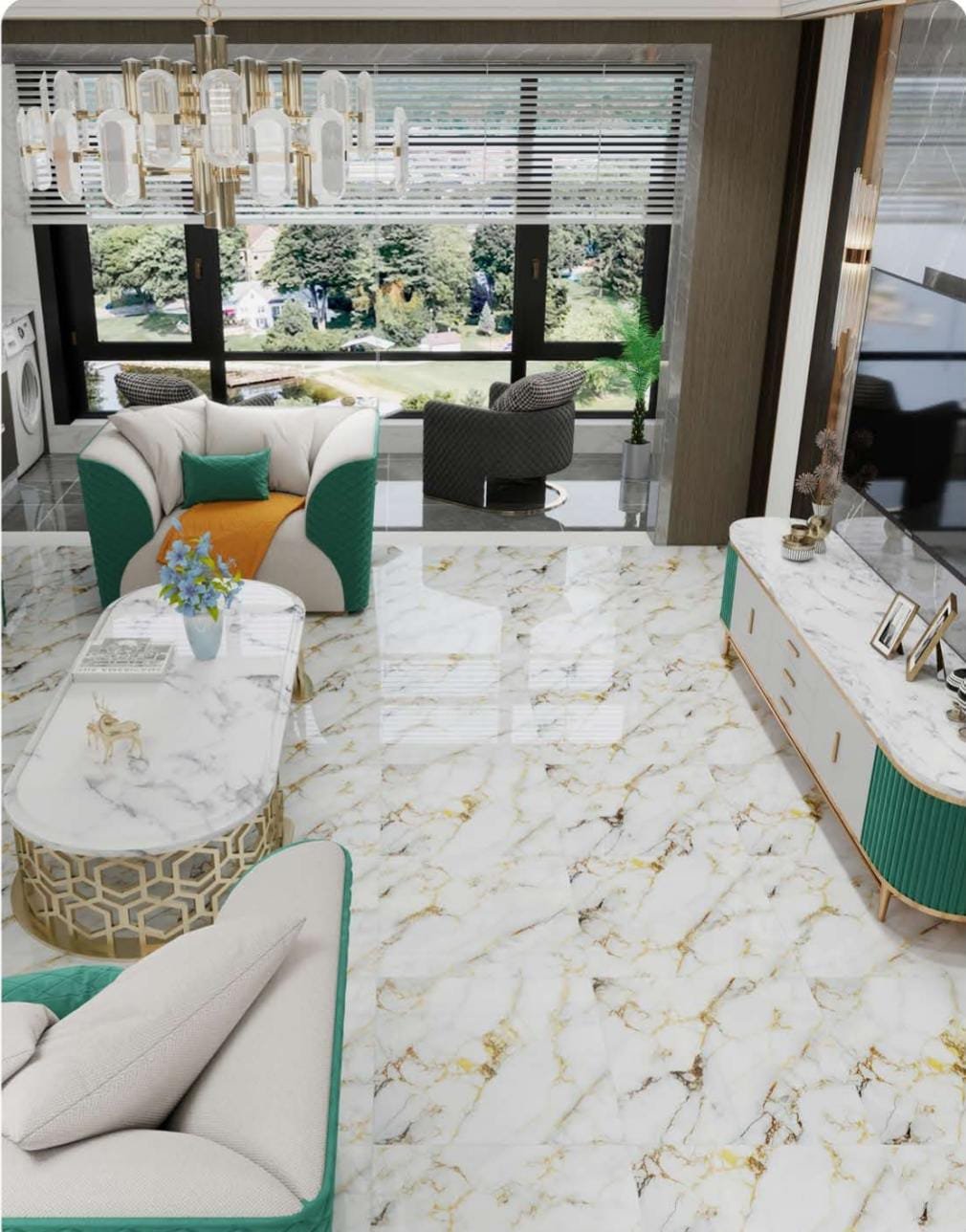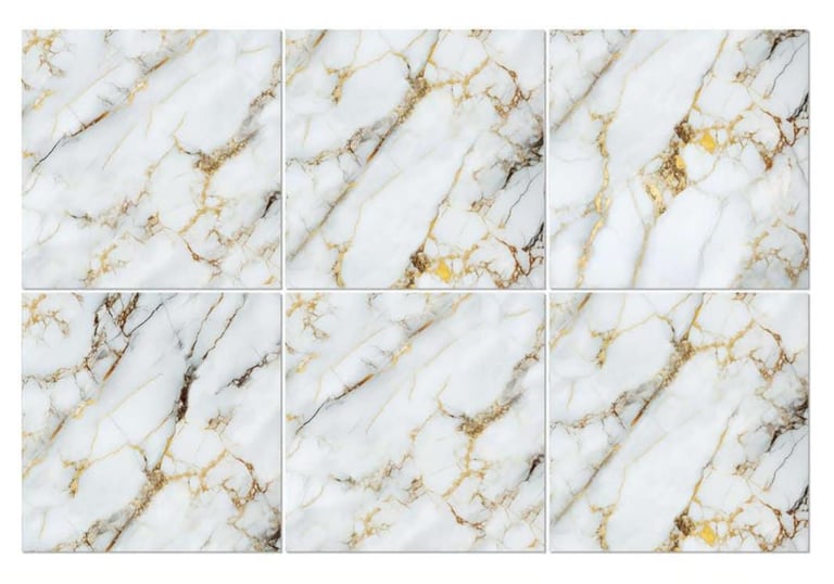 Aesthetic:Bright white base with prominent, luminous gold and subtle grey veining for a high-end, luxurious marble appearance.