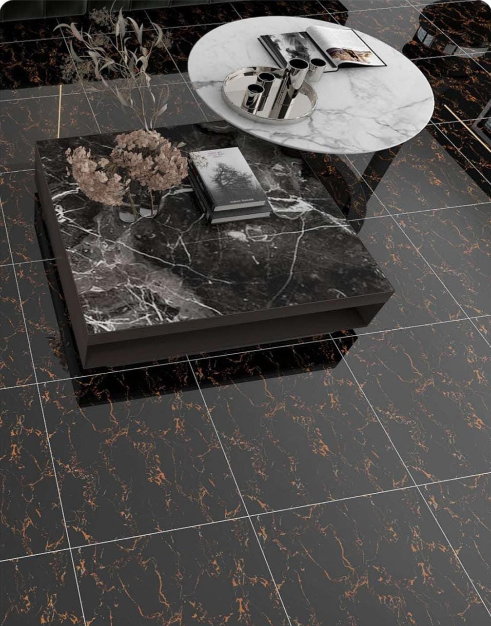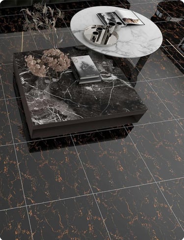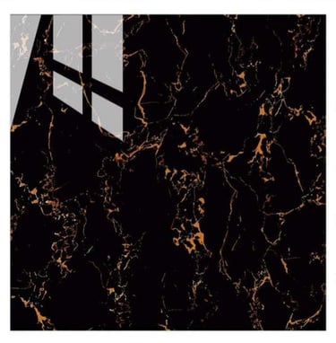 Aesthetic: Deep, brilliant black base with sharp, luminous metallic gold veining for a dramatic, luxurious look.