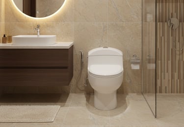 The DELL One-Piece Commode features a clean, seamless design that minimizes exposed curves for an easy-to-clean, modern look, fitting perfectly in any contemporary bathroom.