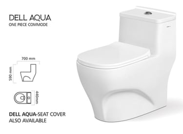 Upgrade your bathroom instantly with the DELL Aqua One-Piece Commode. Its unique shape design and smooth lines offer a minimalist aesthetic that is both beautiful and easy to clean.