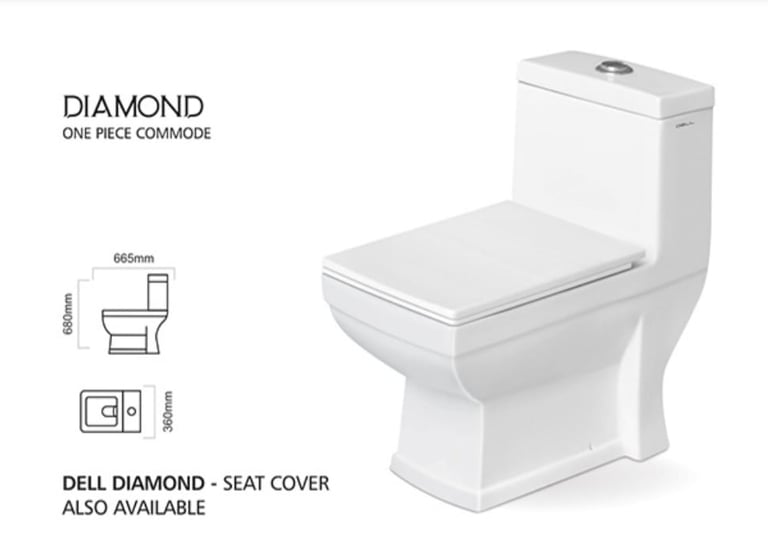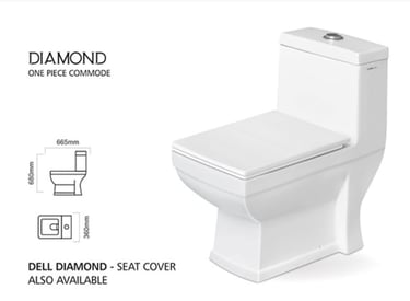 Upgrade your bathroom instantly with the DELL Diamond One-Piece Commode. Its square shape design and smooth lines offer a minimalist aesthetic that is both beautiful and easy to clean.