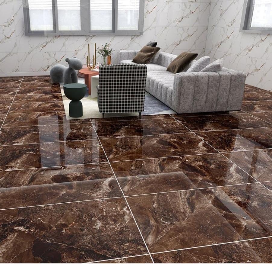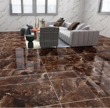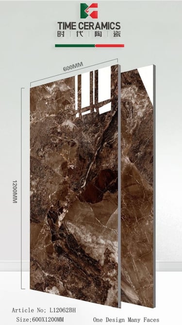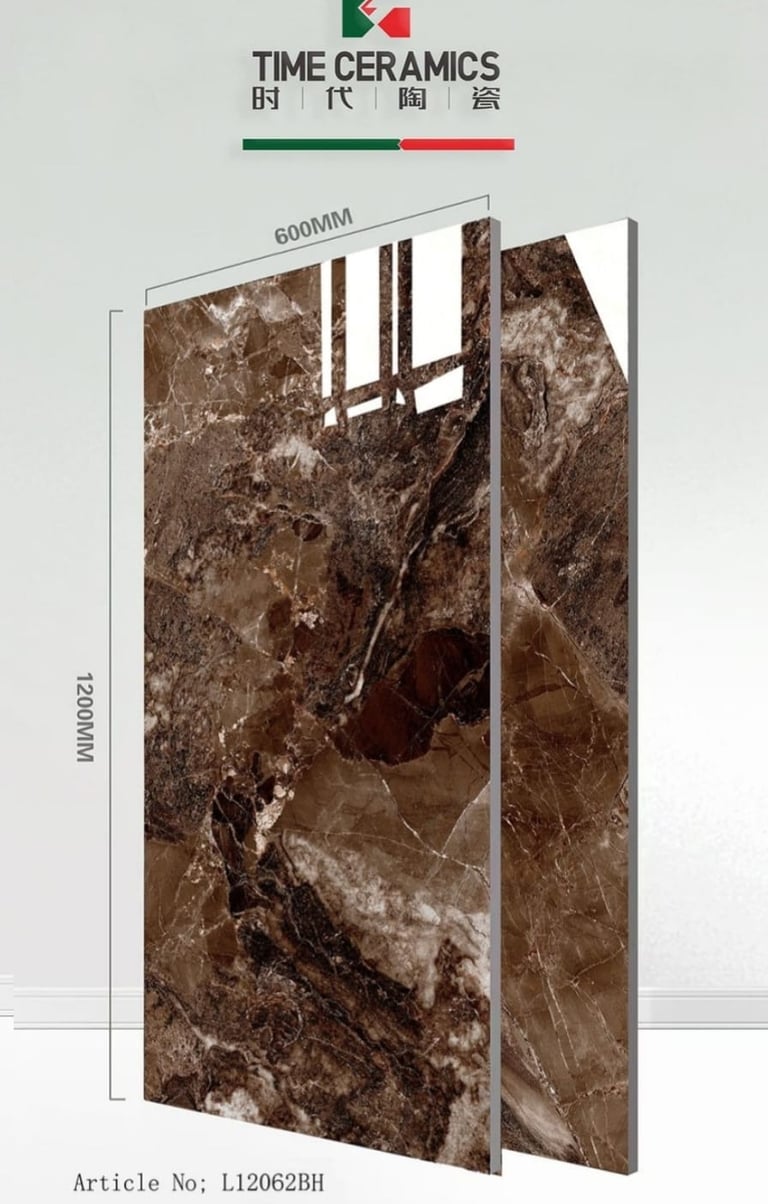 Infuse your space with the warmth and richness of deep marble. This stunning high-gloss porcelain tile from TIME CERAMICS features a rich, dark chocolate-brown base with dramatic, contrasting light beige and white veining, delivering an exceptionally luxurious and timeless aesthetic.