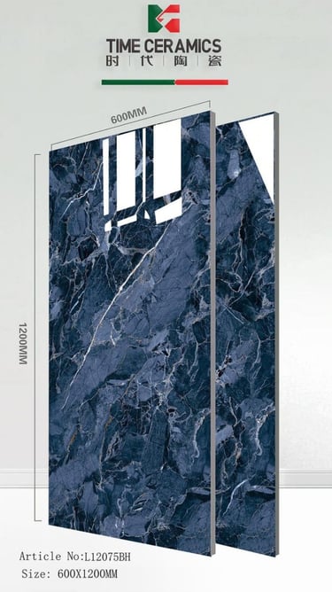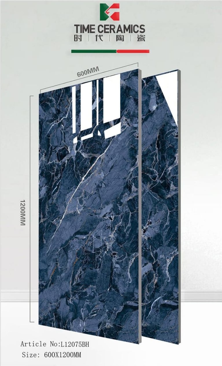 Create an incredibly luxurious and high-contrast space with this mesmerizing large-format tile from TIME CERAMICS. The deep, glossy navy base is crisscrossed by sharp white and subtle gold veining, offering the ultimate in modern elegance and depth.