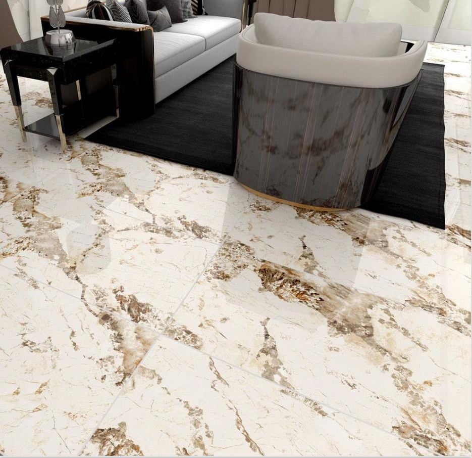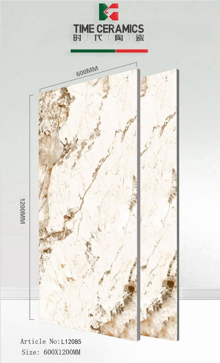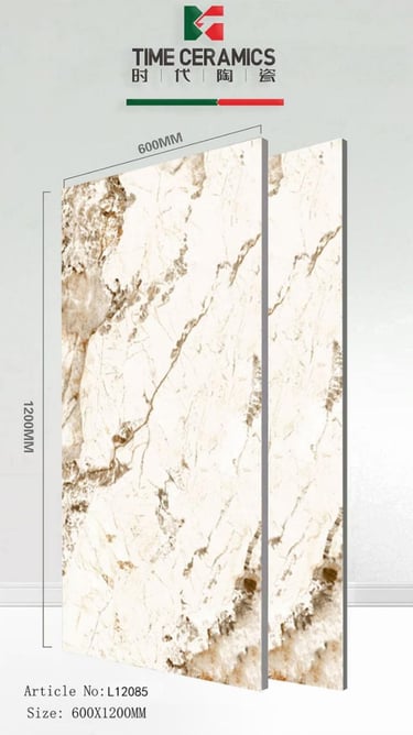 Bring the rugged elegance of natural stone into your space with this distinctive large-format porcelain tile from TIME CERAMICS. It features a warm beige base overlaid with dramatic, organic veining in rich amber and brown tones, creating an earthy, sophisticated look.