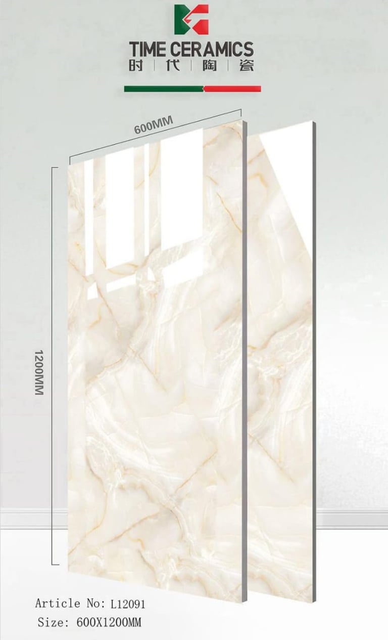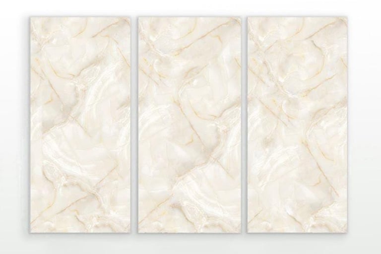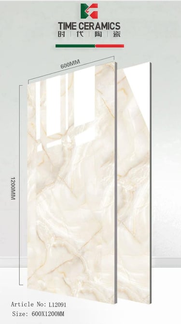 Achieve timeless sophistication with this exquisite large-format porcelain tile from TIME CERAMICS. The creamy white base is rich with warm, golden-beige veining, perfectly mimicking the luxurious depth of natural onyx. The high-gloss finish enhances light and space.