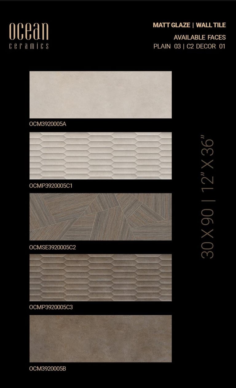 Create a stunning, contemporary feature wall in your bathroom or living space with the sophisticated Ocean Ceramics Matt Glaze Wall Tile collection. This series expertly blends the warmth of wood with modern sculptural texture.