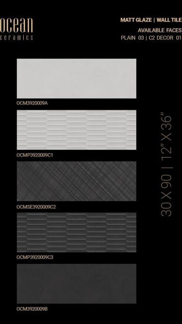 Achieve a high-impact, contemporary look with the OCM-3920009 Series from OCEAN CERAMICS. This striking Matt Glaze Wall Tile collection utilizes a bold monochrome palette and diverse textures for maximum visual drama.