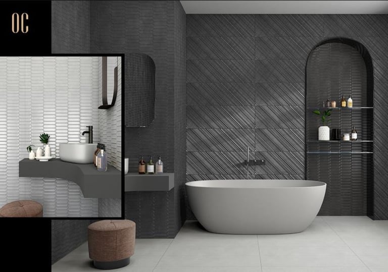 Monochrome 3D Texture & Diagonal Line Wall Tiles