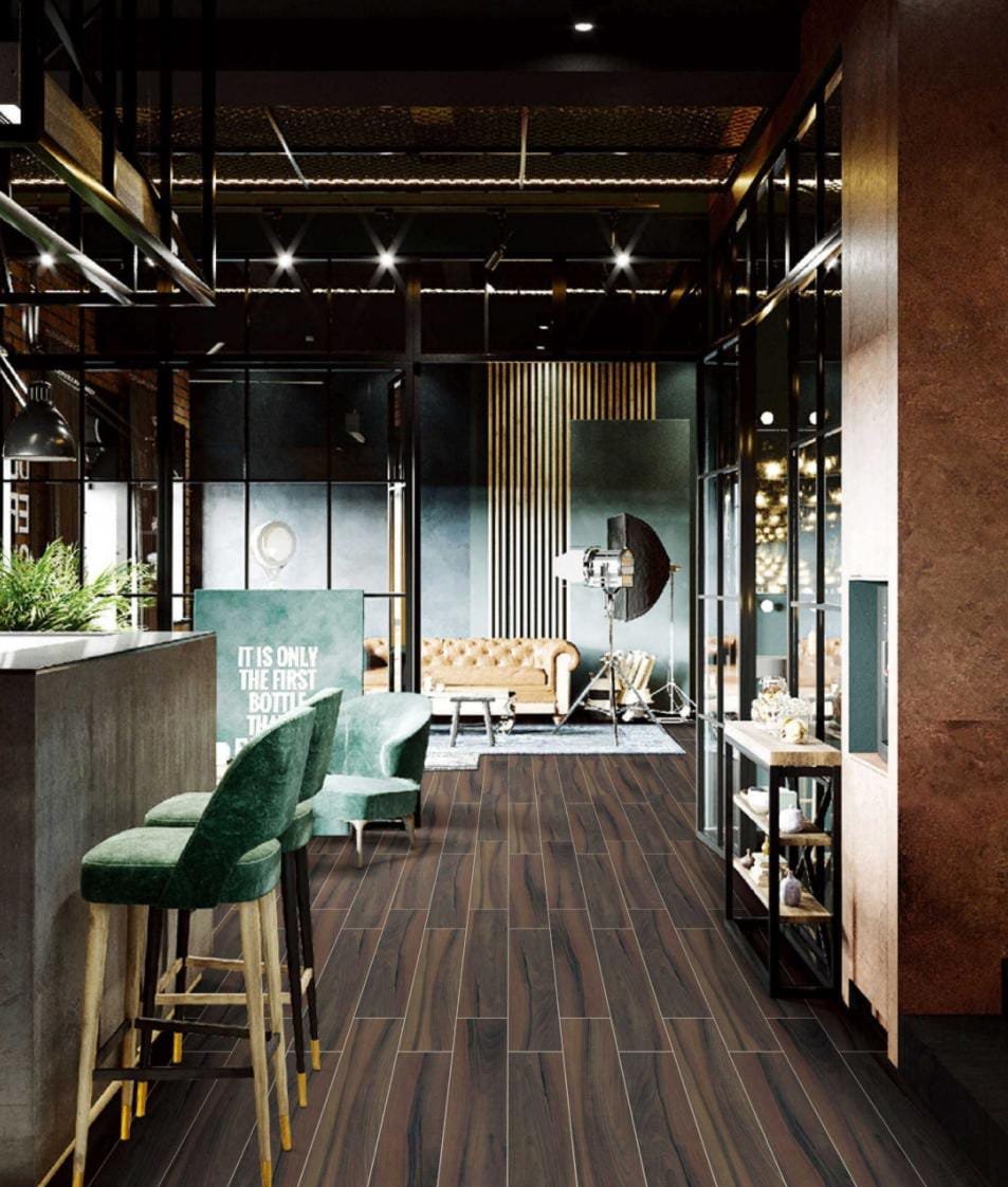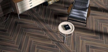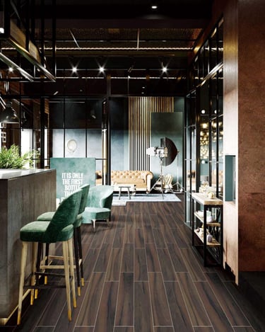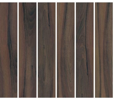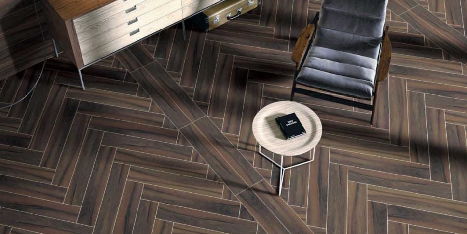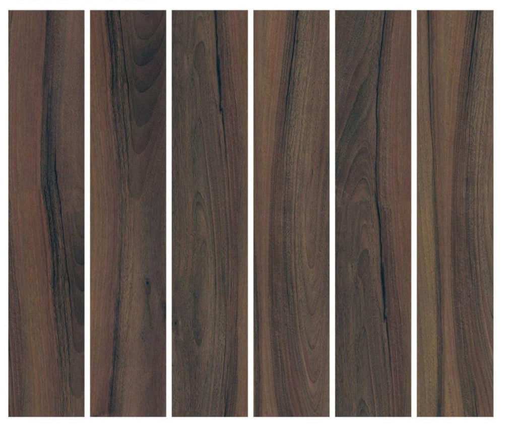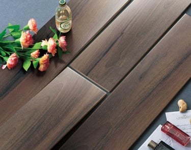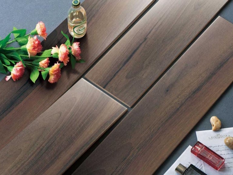 Aesthetic: This tile mimics a deeply stained, character-rich hardwood.