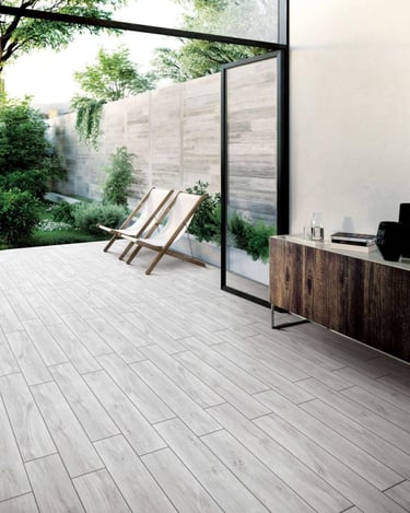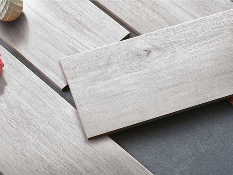 Aesthetic: This tile replicates the appearance of finely textured Ash wood treated with a light, neutralizing wash.