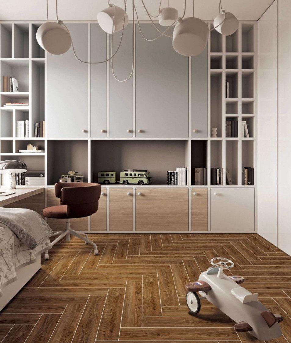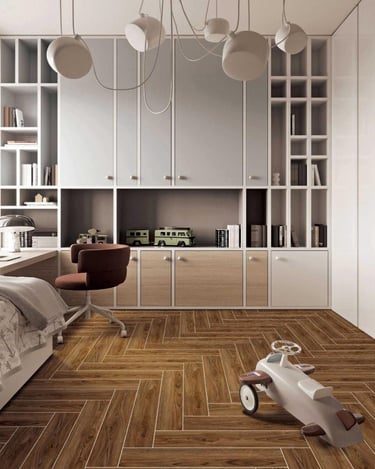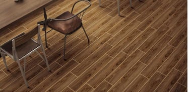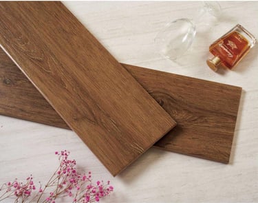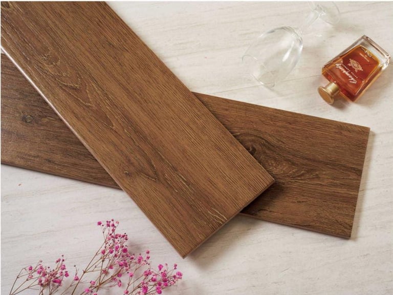 Aesthetic: This tile features a classic, rich walnut color with high-texture grain and visible knot patterns that capture the organic look of natural, saw-cut wood.