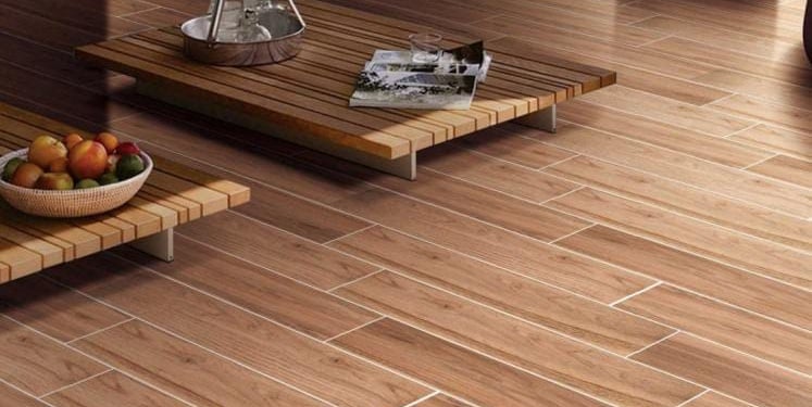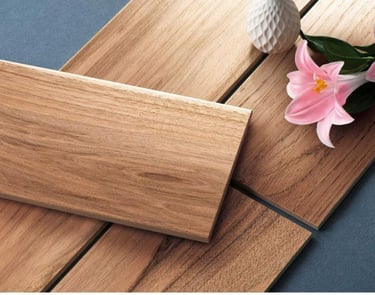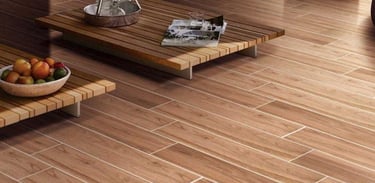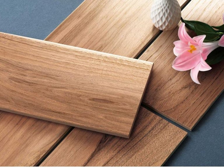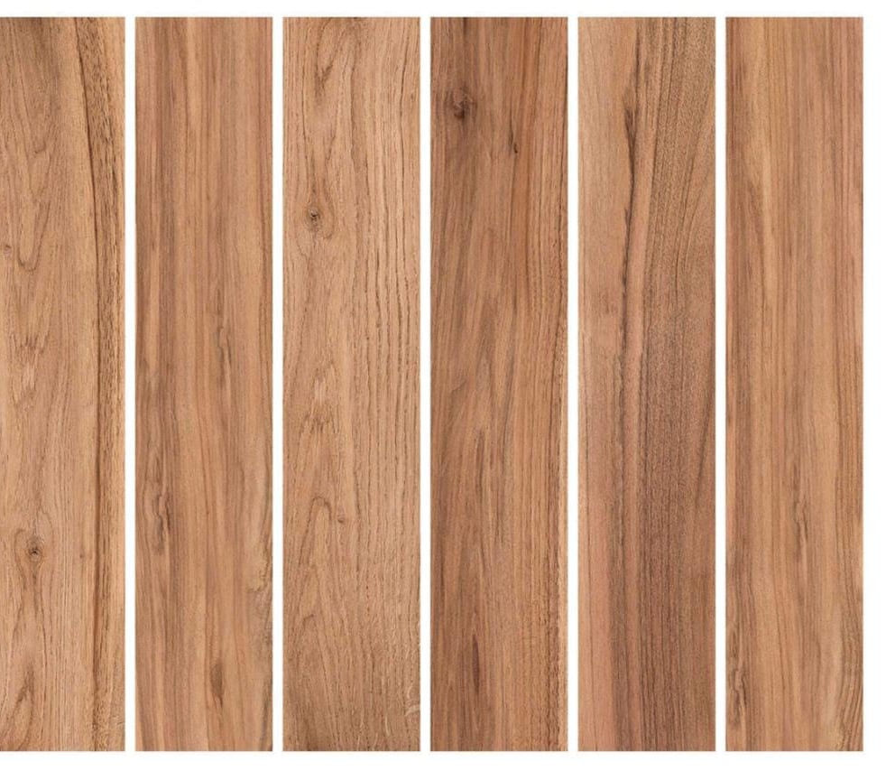 Aesthetic: This tile features a classic, rich reddish-brown color with flowing, highly visible grain patterns and distinctive knots, capturing the high-character look of natural hardwood.