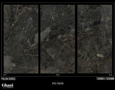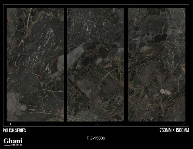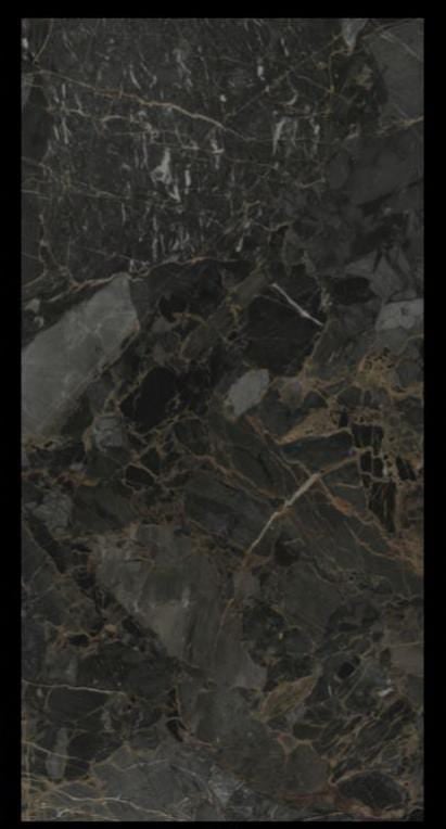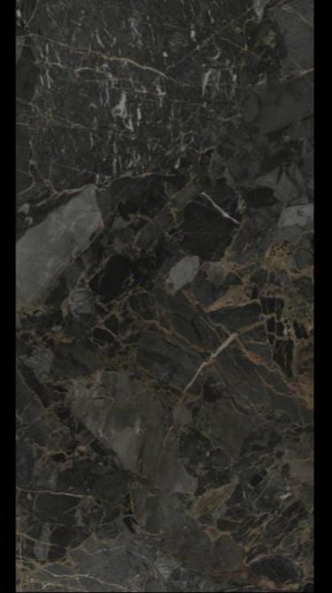 Aesthetic: Unique Dark Breccia/Conglomerate Marble Look with intricate grey tones and metallic veining