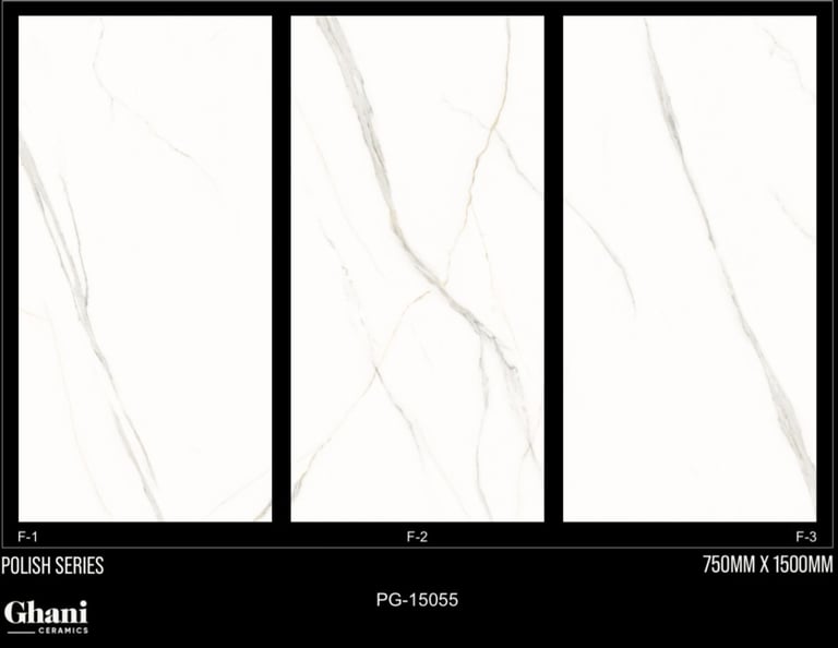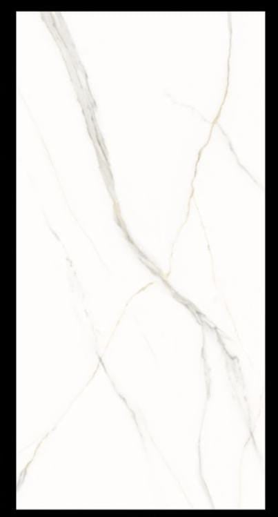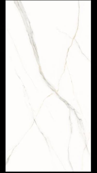 Aesthetic: Premium Calacatta Marble Look with prominent grey and delicate gold veining